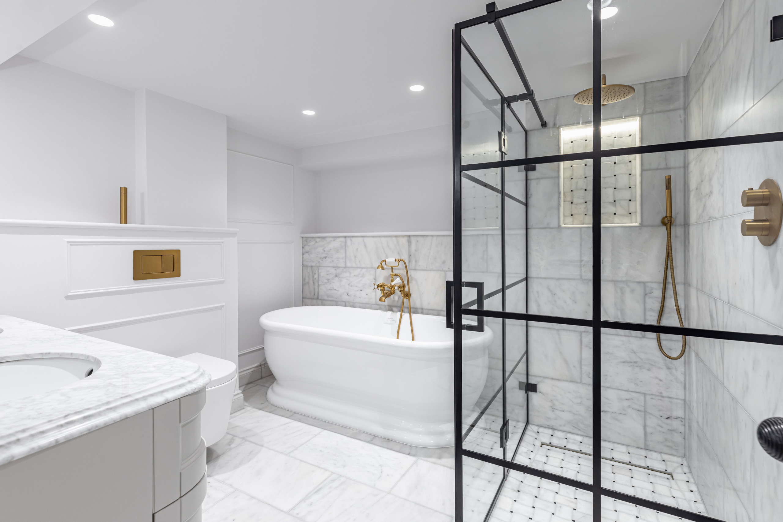 Proudly delivered this iconic rennovation project wherein we created and installed bespoke joinery from wardrobes to kitchen fixtures. We have also sourced and installed distinct marble, porcelain and engineered wood across walls and flooring areas. Additionally, we created unique features such as glass walk-in shower with galvansied steel frame.